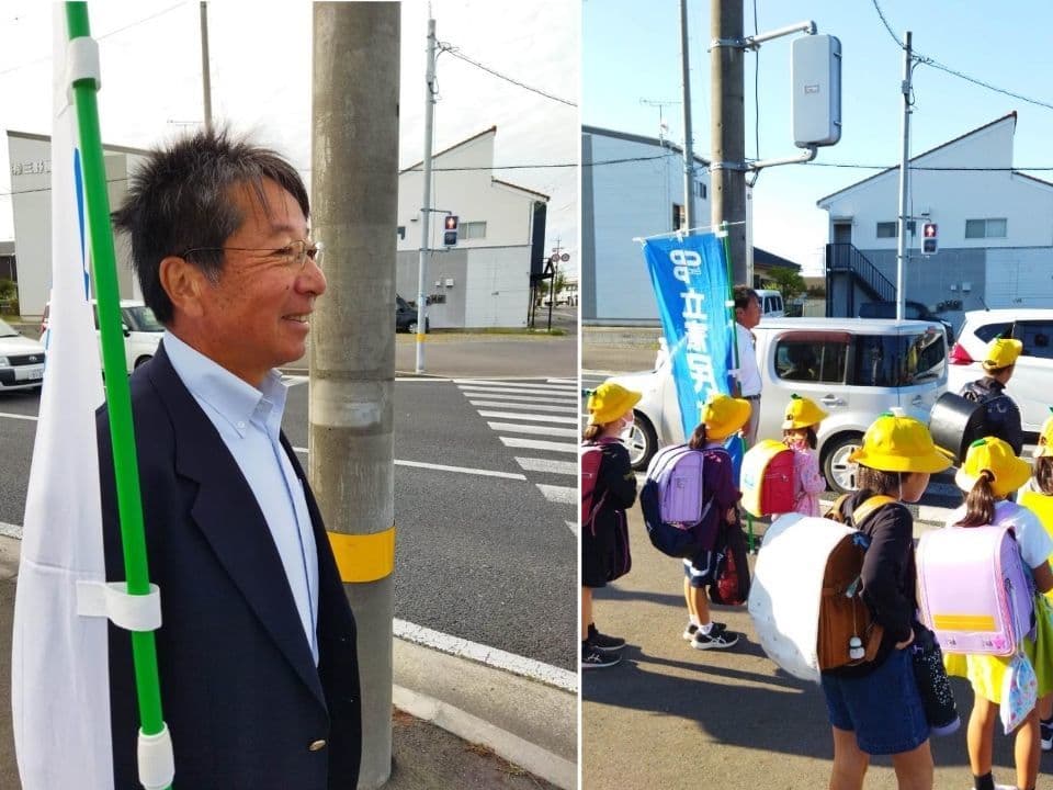 毎朝7時から、外野陸橋または大島陸橋付近でご挨拶をしています。
